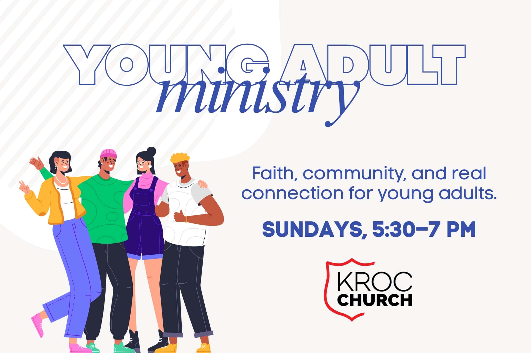 Join us Sundays from 5:30-7pm for faith, community, and real connection for young adults.
