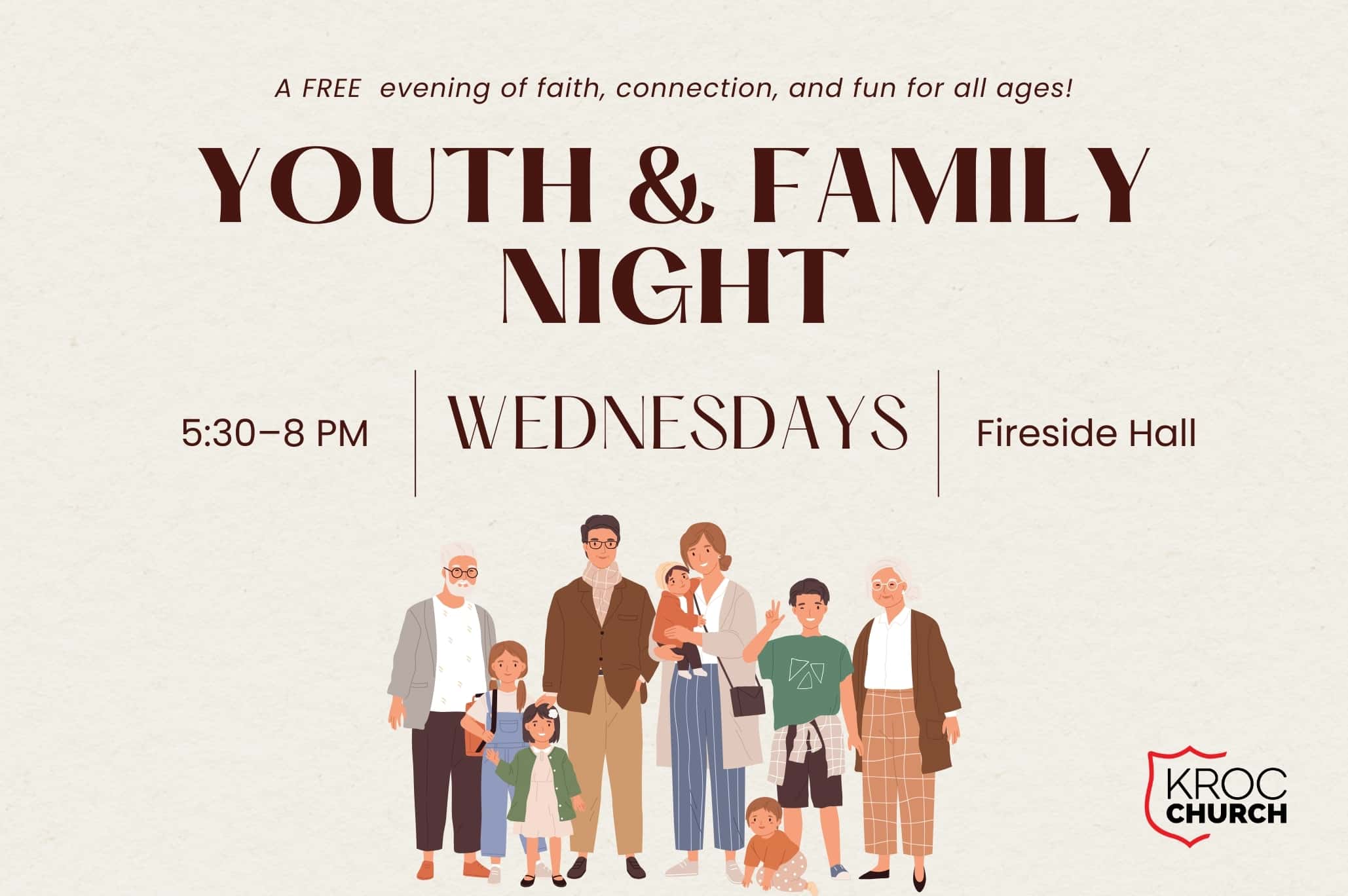 Join us Wednesdays from 5:30-8pm for a FREE evening of faith, connection, and fun for all ages.